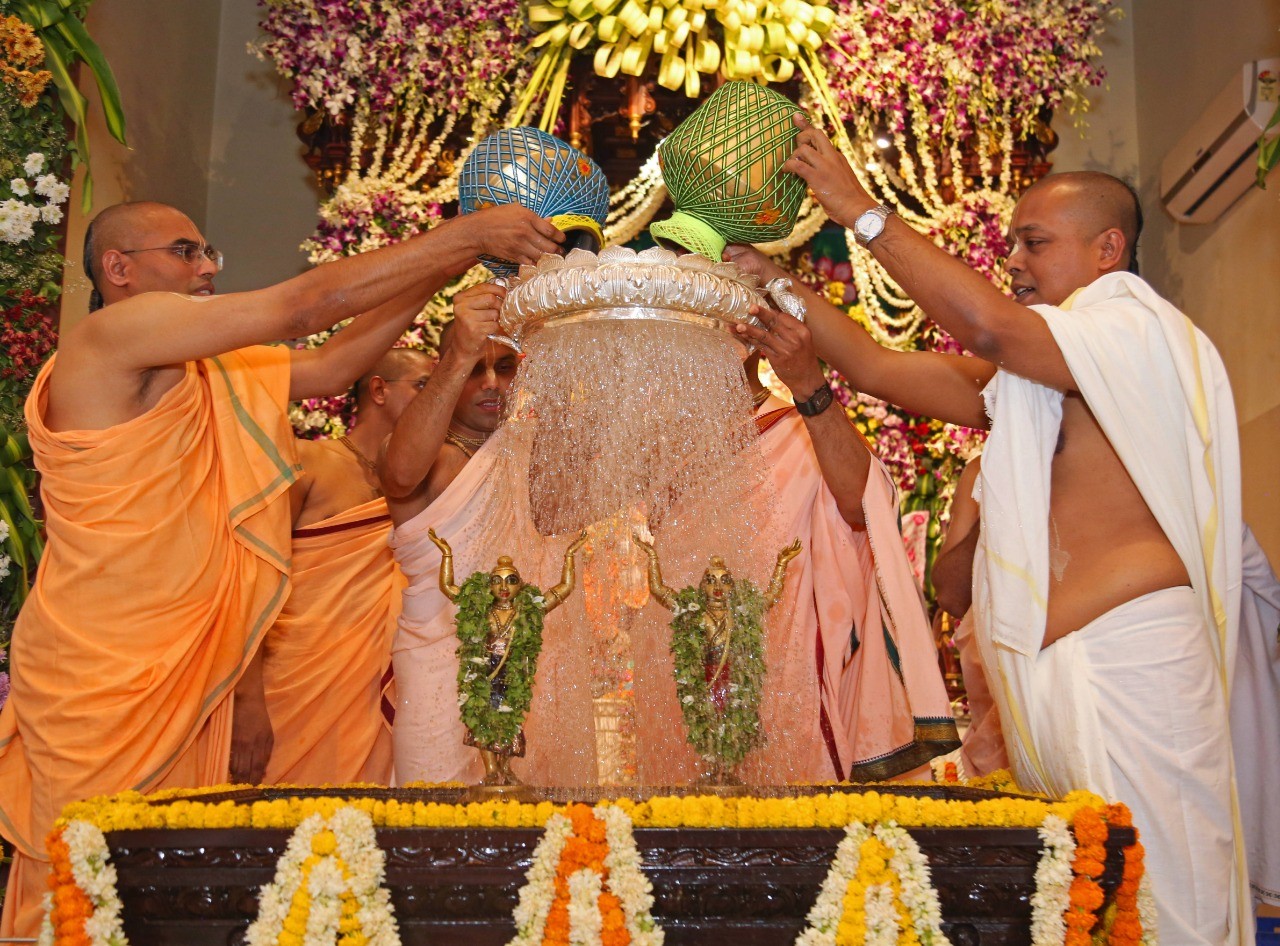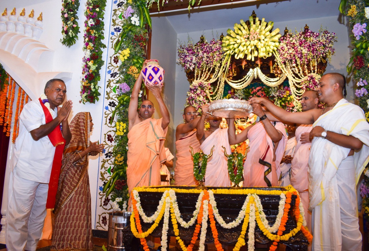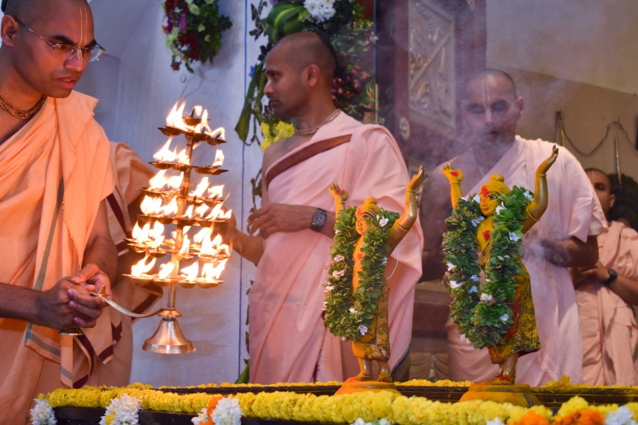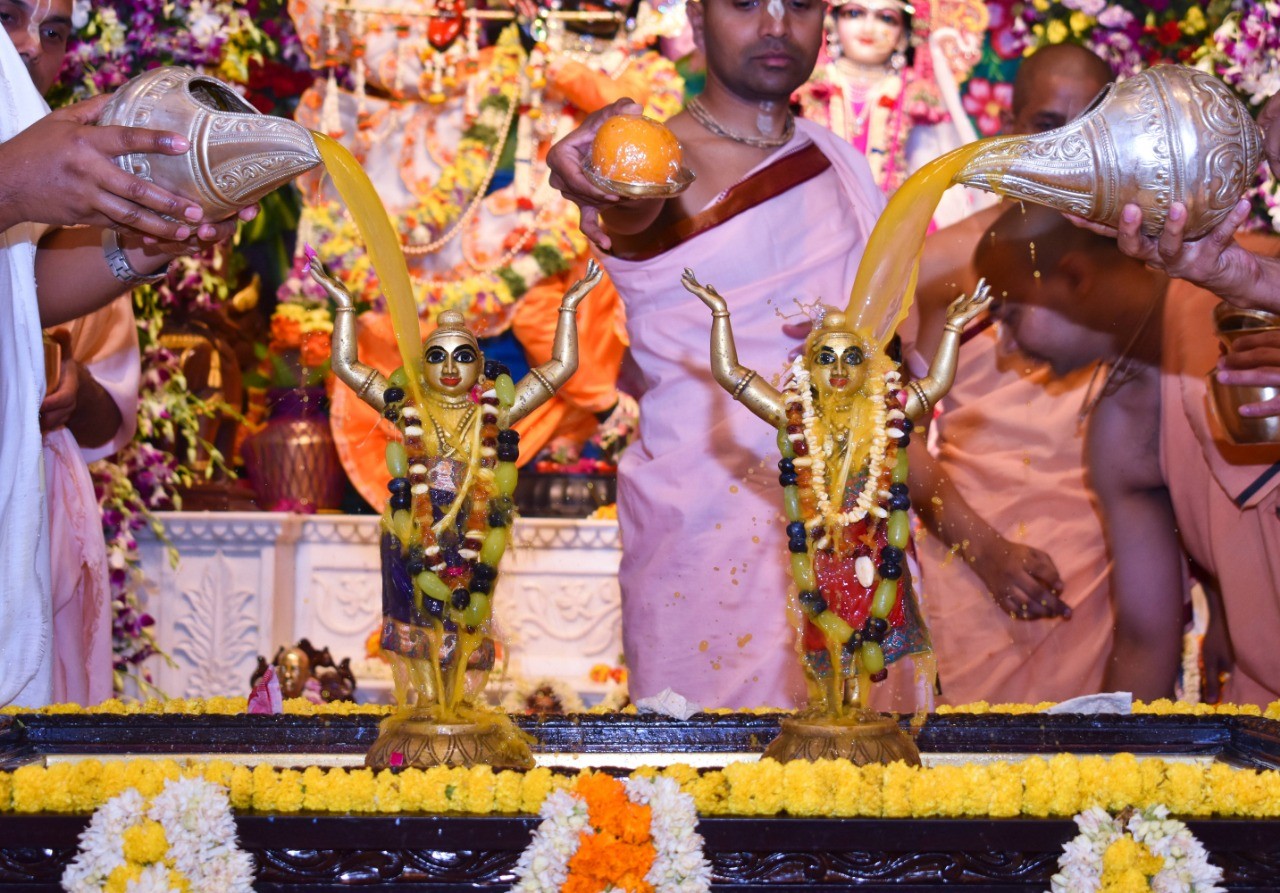 Hare Krishna Mandir, Ahmedabad celebrated Gaura Prunima, the divine appearance day of Lord Chaitanya Mahaprabhu on 28th March 2021. The celebrations included Palaki utsav, maha-abhisheka & special bhajans. During the Rajobhog, 108 food items were offered to Their Lordships and Maha-prasad was distributed to the devotees. 5 Families connected to the temple received Sri Sri Nitai Gauranga Deities from the temple to worship at their homes.