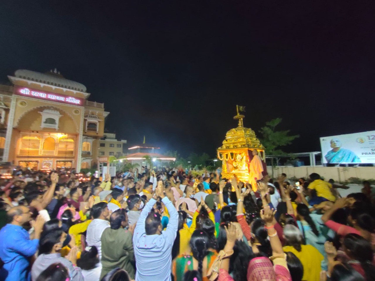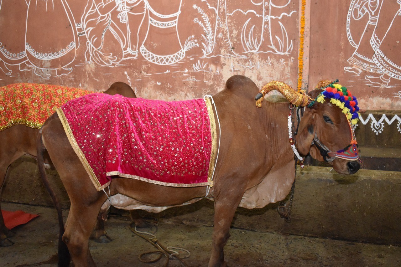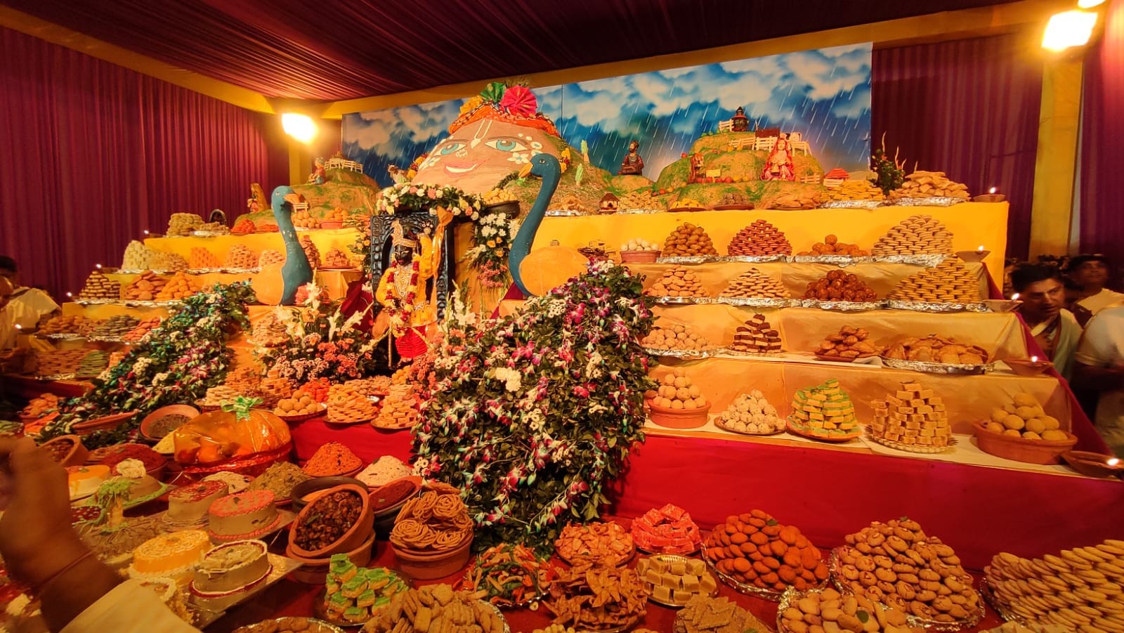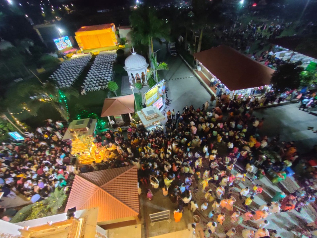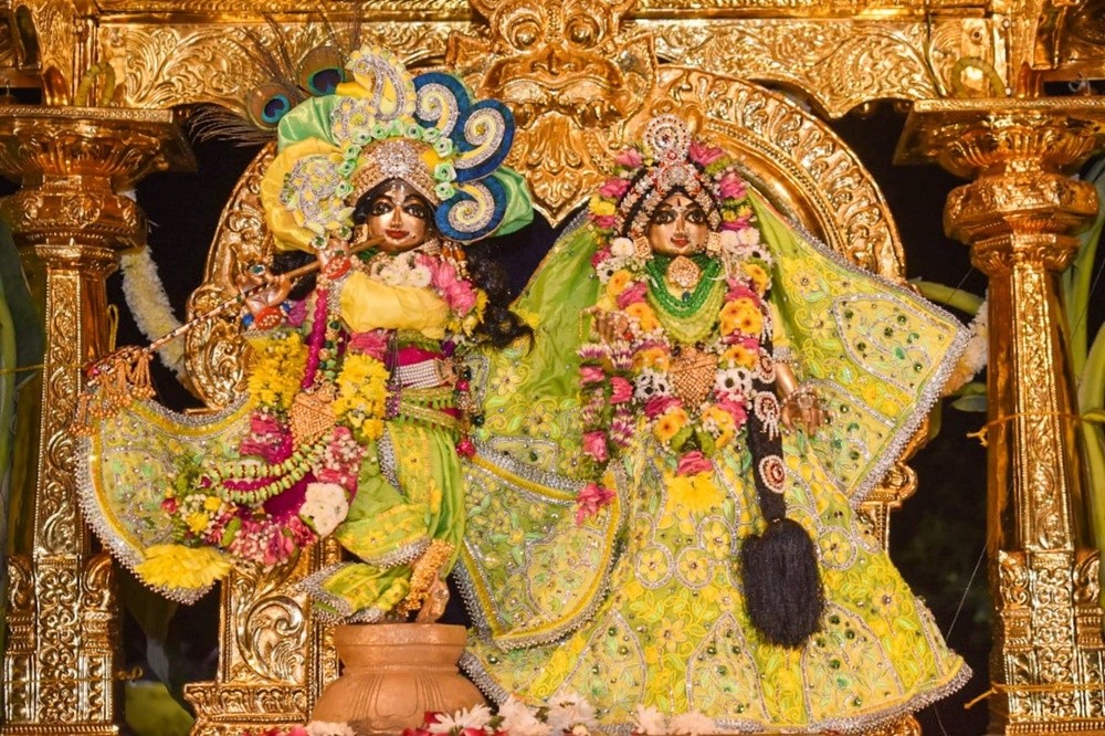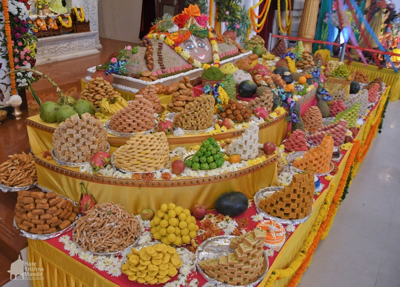Govardhan Puja was celebrated with great grandeur. The festival included darshan & parikrama of replica of Giriraj Govardhan prepared with pure vegetarian cake & grand annakuta offering; swarna ratha yatra of Sri Sri Radha Madhav; Go-puja at Radha Madhav Gaushala of the temple and Deepotsav with Damodarashtkam bhajan.