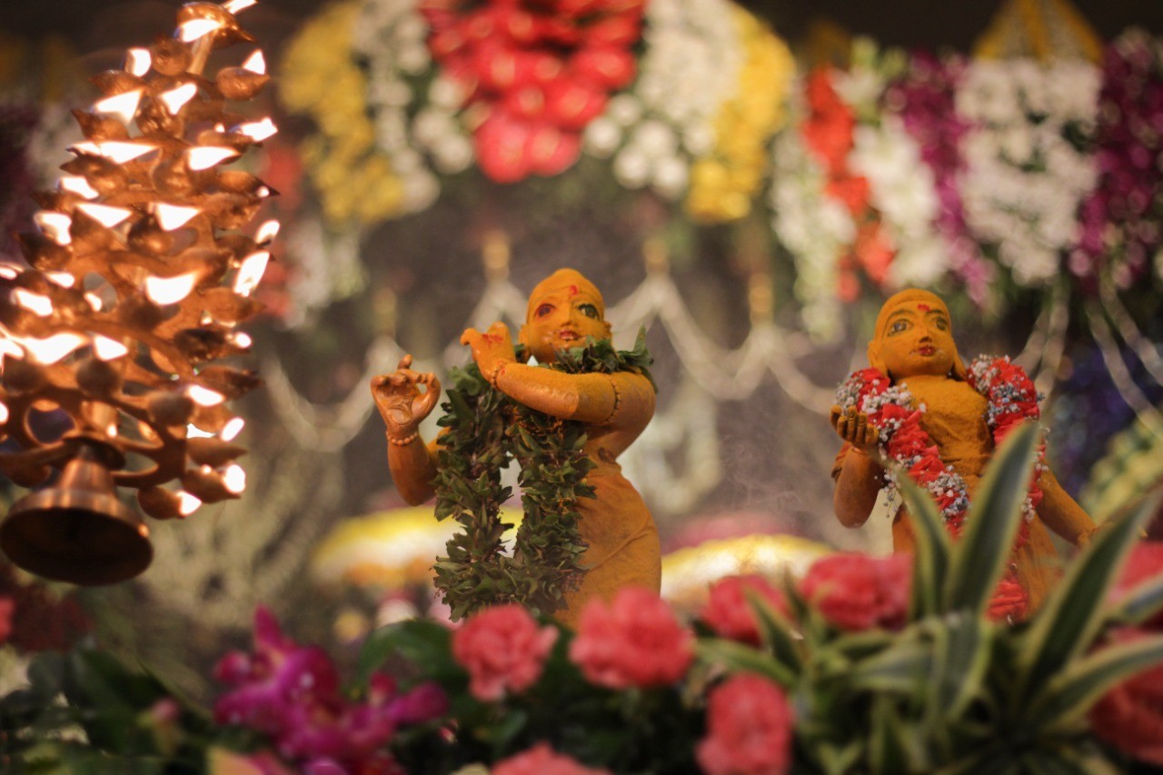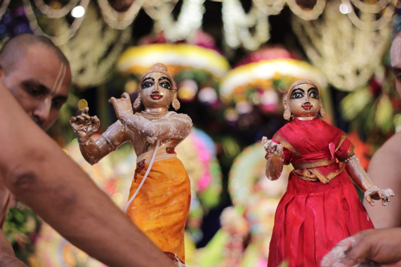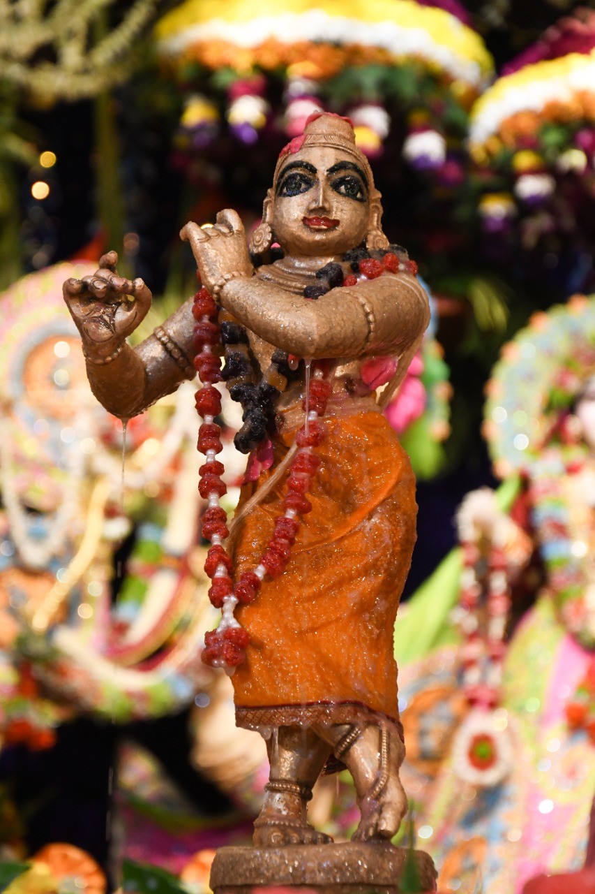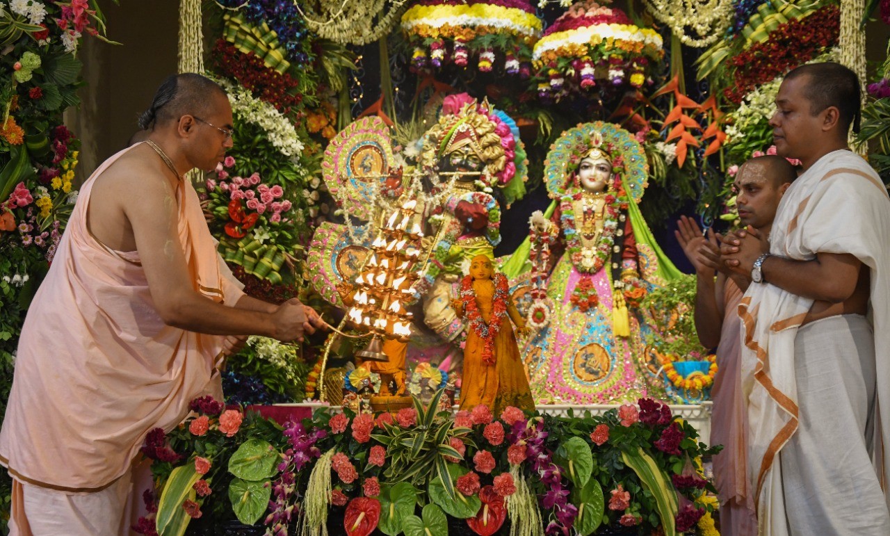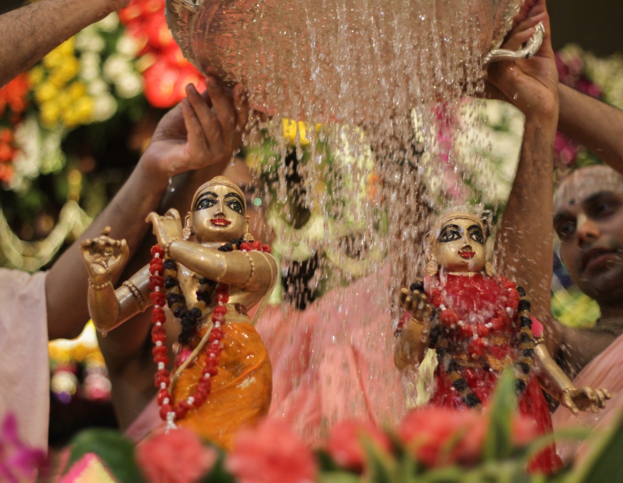Sri Krishna Janmashtami Celebration at Hare Krishna Mandir Ahmedabad on 30th August, 2021. Abhishekam of Sri Sri Radha Madhav with panchamrita and shodashopchara.