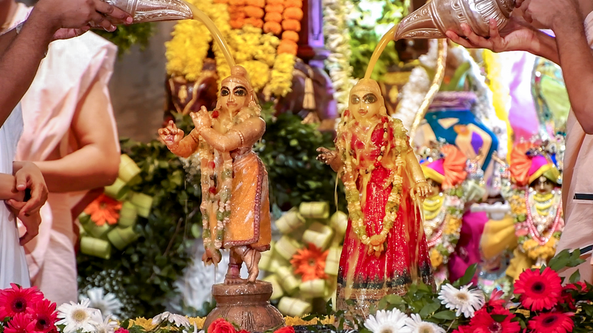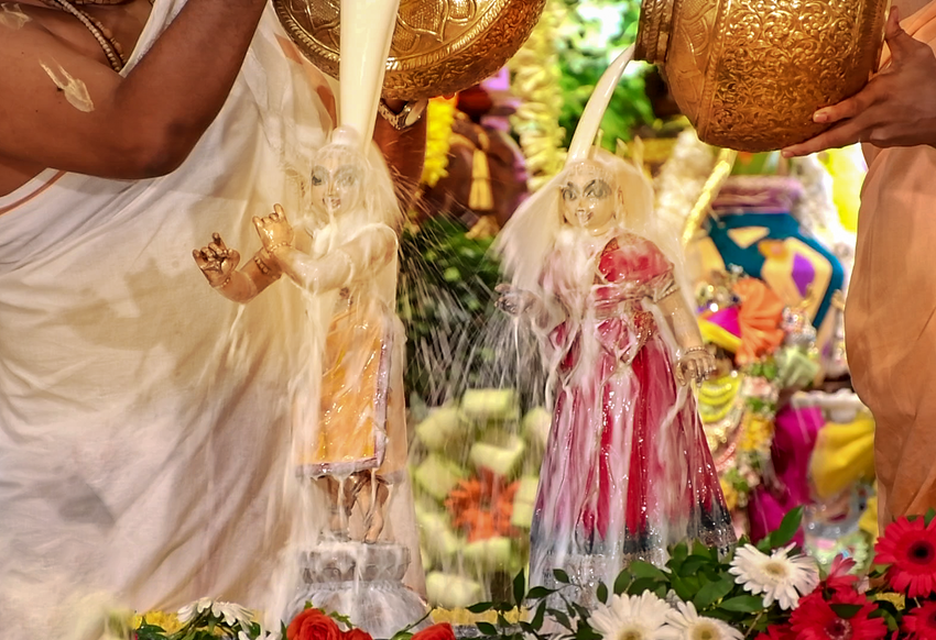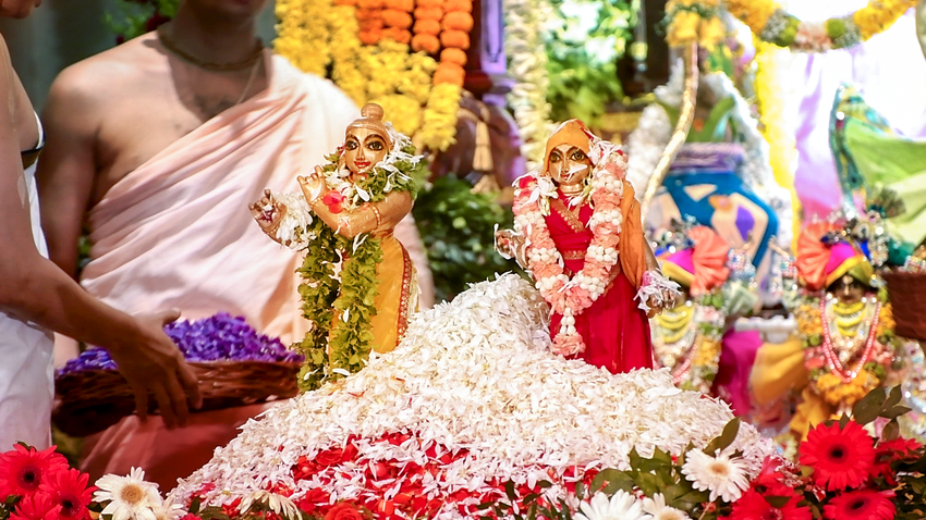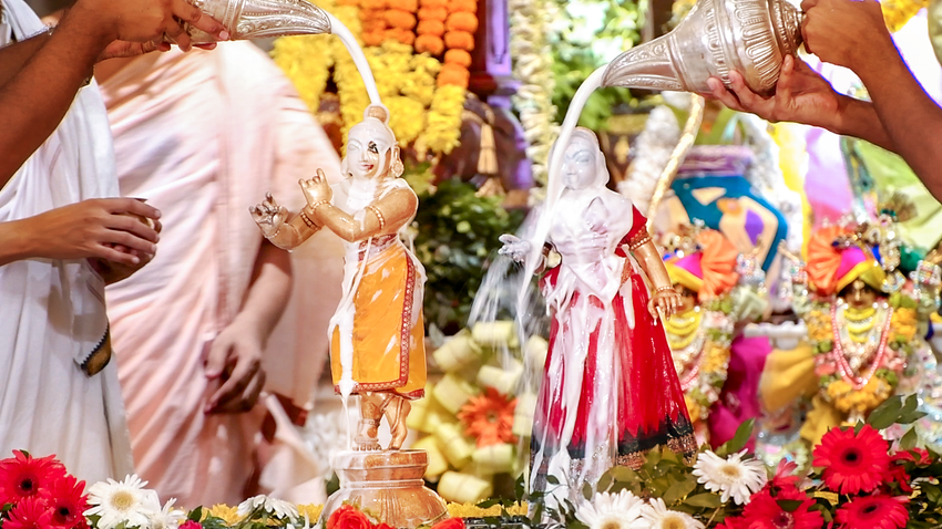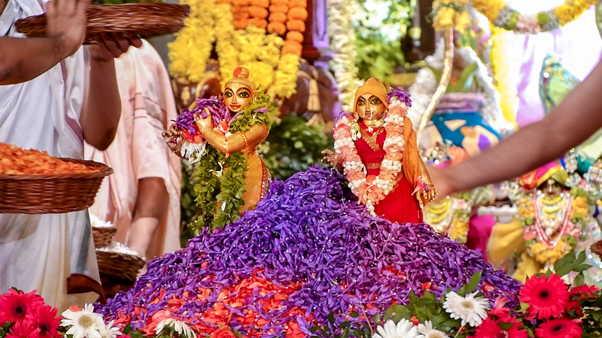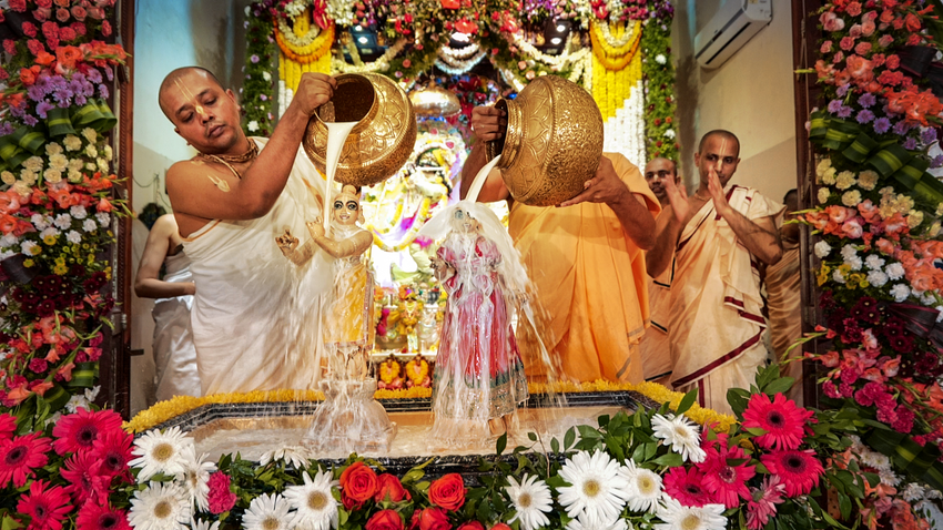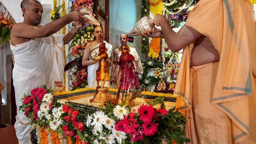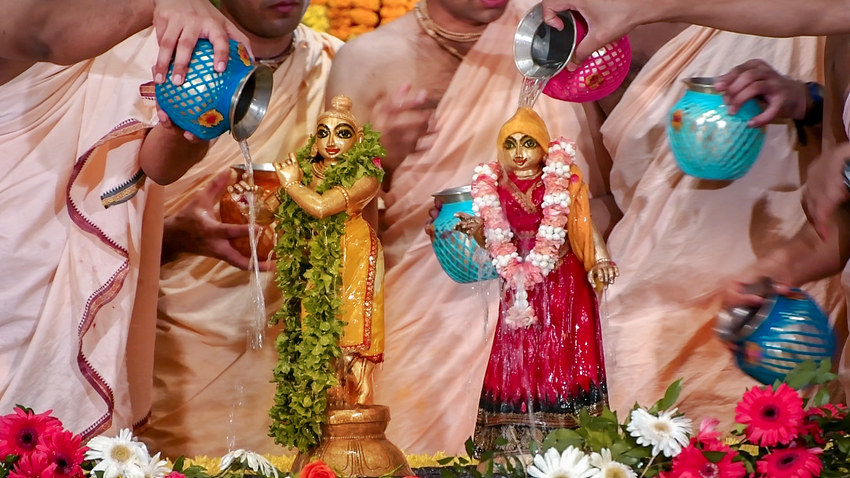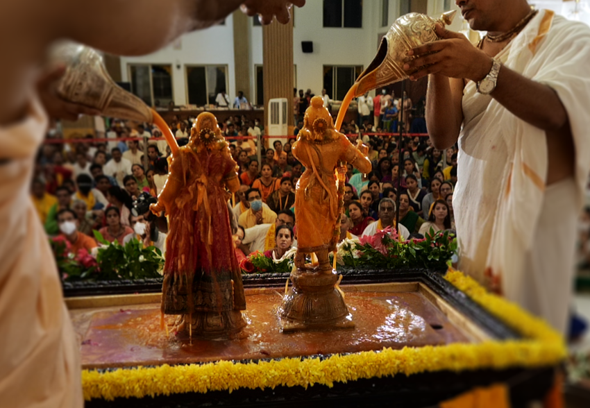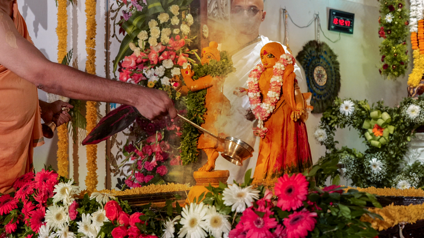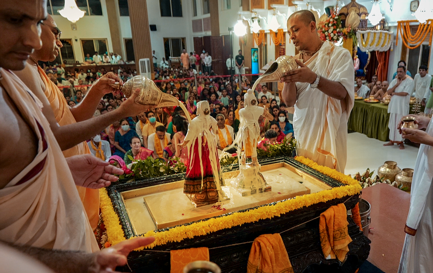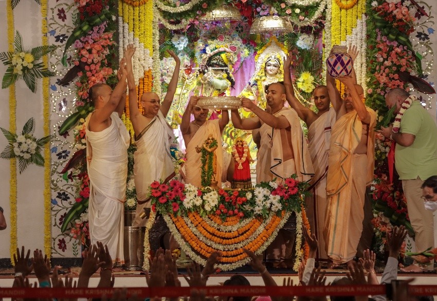 Sri Radhashtami was celebrated at Hare Krishna Movement Ahmedabad on September 14, 2021. A grand abhishekam was offered to Their Lordships Sri Sri Radha Madhav, followed by a discourse by HG Shri Jaganmohan Krishna Dasa, President HKM Ahmedabad. The celebrations concluded with tumultuous harinam sankirtan, dance and distribution of Maha-prasadam.
