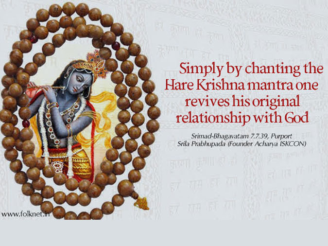 “Hare Krishna, Hare Krishna, Krishna Krishna, Hare Hare/ Hare Rama, Hare Rama, Rama Rama, Hare Hare. These sixteen names composed of thirty-two syllables are the only means of counteracting the evil effects of the Kali-yuga. After searching through all the Vedic literature, one cannot find a method of religion for this age so sublime as the chanting of the Hare Krishna mantra”.